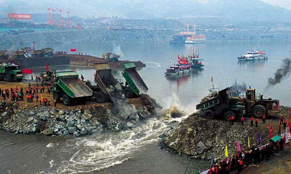1997年11月8日長江三峽水利樞紐工程成功實現大江截流。