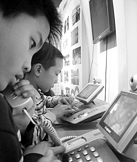 2009年4月30日,山東淄博張店區鐵路小學的學生在網通展覽館體驗可視電話。