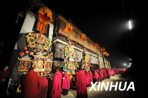 新華網西寧2月10日電 元宵佳節,著名藏傳佛教圣地塔爾寺燈火燦爛,人頭攢動。在悠揚的佛樂聲中,享有雪域奇葩美譽的酥油花再度“綻放”,引得十多萬人紛至沓來,一睹芳容。