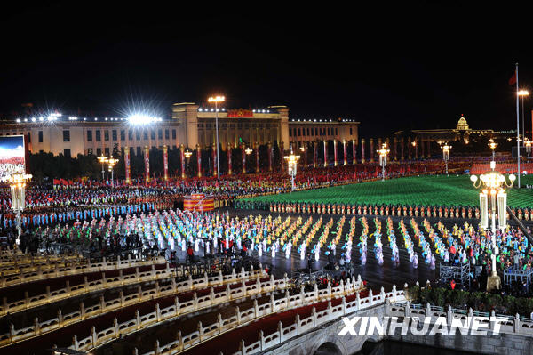 10月1日晚,首都各界慶祝中華人民共和國成立60周年聯歡晚會在北京天安門廣場舉行。新華社記者郭大岳攝