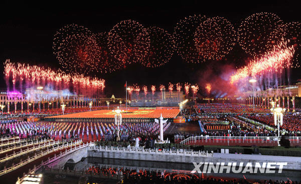 10月1日晚,首都各界慶祝中華人民共和國成立60周年聯歡晚會在北京天安門廣場舉行。新華社記者 郭大岳 攝