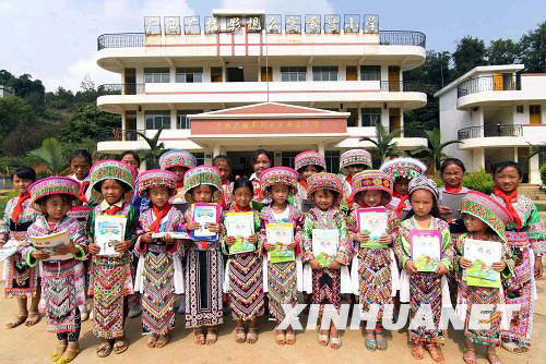 8月31日,么窩希望小學(xué)女童班的少數(shù)民族學(xué)生展示剛領(lǐng)到的新課本。當(dāng)日,廣西隆林各族自治縣者浪鄉(xiāng)么窩村希望小學(xué)的學(xué)生們在報名后,高興地領(lǐng)到了免費(fèi)教科書。今年秋季開學(xué)后,隆林縣約5.7萬名義務(wù)教育階段的特困生都將領(lǐng)到免費(fèi)教科書。新華社發(fā)(林斌 攝)