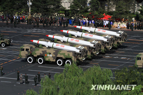10月1日,首都各界慶祝中華人民共和國成立60周年大會在北京舉行。這是某新型常規導彈方隊。新華社記者 李紫恒 攝