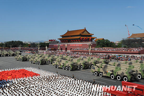 10月1日,首都各界慶祝中華人民共和國成立60周年大會在北京舉行。這是某新型中遠程地地常規導彈方隊接受檢閱。新華社記者 丁林攝