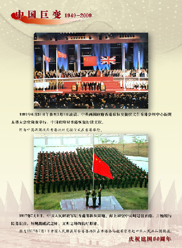 60載風雨歷程,60載壯麗詩篇。新中國成立以來,中國共產黨領導和團結海內外中華兒女,以創造性的大戰略,推動祖國統一進程邁出歷史性的大步伐:香港、澳門順利回歸,中華民族洗刷百年屈辱,“一國兩制”偉大構想成功實踐;兩岸關系從隔絕、對峙走向交流、對話,排除各種艱難險阻,掀開和平發展的歷史新頁……