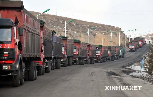 內蒙古交通部門調集大批車輛運輸煤炭(2月4日攝)。