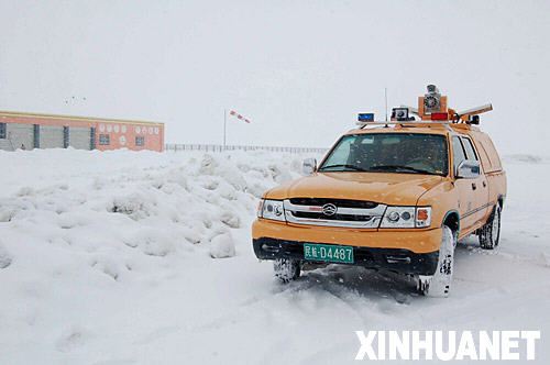 1月30日,在云南香格里拉機(jī)場,工作人員開車巡邏。 新華社記者 關(guān)桂峰 攝