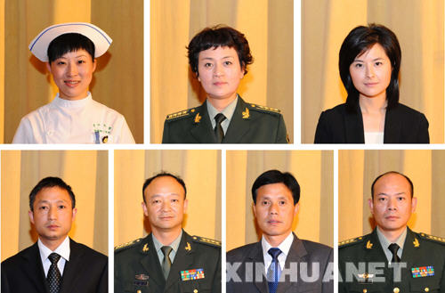 抗震救災(zāi)英模事跡報告團(tuán)首場報告會將于11日在京舉行 由中宣部、中組部、解放軍總政治部等聯(lián)合主辦的抗震救災(zāi)英模事跡報告會,將于11日上午在北京人民大會堂舉行首場報告。7位來自抗震救災(zāi)一線的英模人物,將為首都各界聽眾講述這次抗震救災(zāi)歷程中的英雄事跡和感人故事。 圖為將參加首場報告會的英模:刁冬梅、孫國利、張泉靈(上排從左至右);劉亞春、張曉峰、羅鴻亮、王毅(下排從左至右)。 新華社記者李濤攝