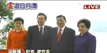 陳云林夫婦與江丙坤夫婦在日月潭湖畔合影。 來源:臺灣TVBS電視臺