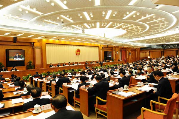 2月25日,十一屆全國人大常委會第七次會議在北京人民大會堂舉行第一次全體會議。吳邦國委員長主持會議。(新華社記者李濤攝)