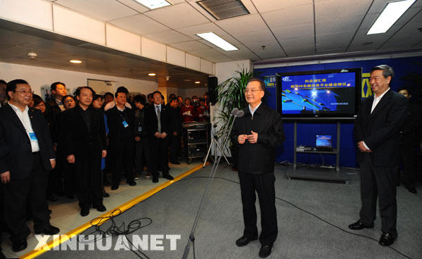 這是訪談結(jié)束后,溫家寶看望中國政府網(wǎng)、新華網(wǎng)工作人員并發(fā)表講話。新華社記者 李濤 攝