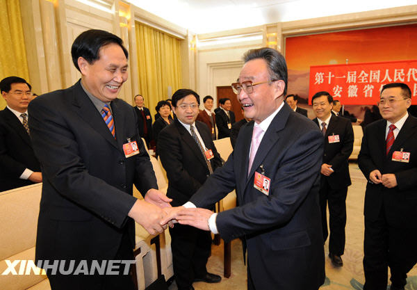 3月5日,中共中央政治局常委、全國人大常委會委員長吳邦國參加十一屆全國人大二次會議安徽代表團的審議。新華社記者劉建生攝