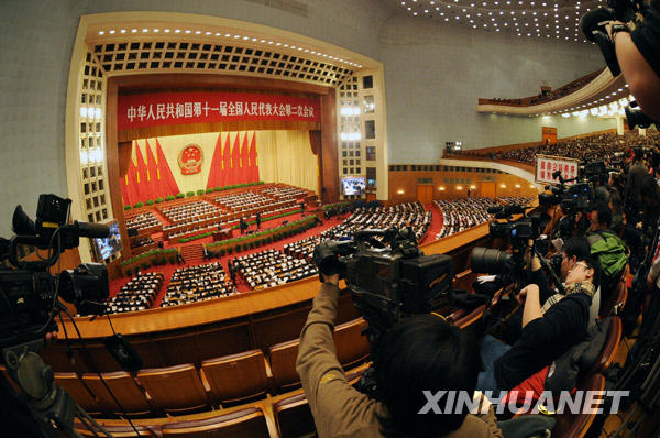 3月10日,十一屆全國人大二次會議在北京人民大會堂舉行第三次全體會議。新華社記者饒愛民攝