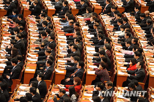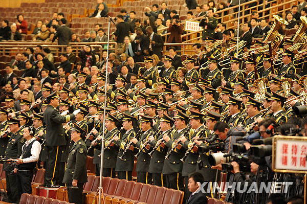 兩會新華網快訊:全場起立,高唱國歌。吳邦國宣布:中華人民共和國第十一屆全國人民代表大會第二次會議勝利閉幕。