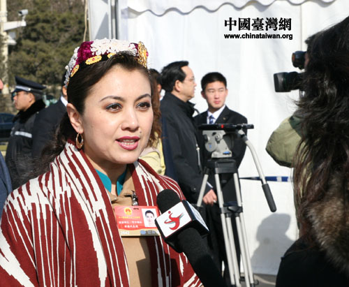 十一屆全國人大二次會議13日閉幕,圖為少數民族代表接受媒體采訪。