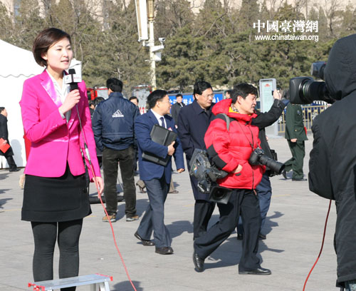 中國臺灣網3月13日北京消息 十一屆全國人大二次會議今天上午閉幕,代表們剛剛走出會堂,就遭到了記者們的圍堵。(記者 張弛/圖文)