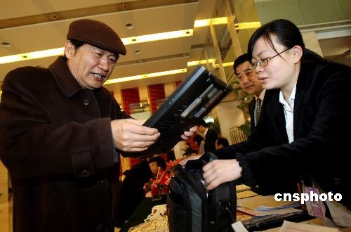 3月2日,參加全國政協十一屆二次會議的全國政協委員陸續抵京報到,此次大會特地為所有委員配備了筆記本電腦。中新社發 傅丹丹 攝