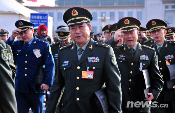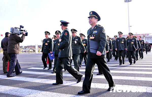 3月5日,十一屆全國人大三次會議在京開幕,本網(wǎng)記者用鏡頭記錄下兩會軍隊代表的英姿。圖為代表們步入會場。新華網(wǎng) 孫巍 攝