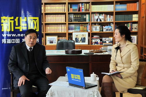 茅永紅接受新華網湖北頻道主持人謝新訪談。肖進安 攝