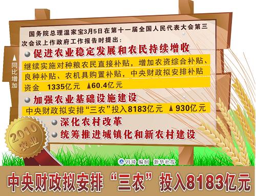 8183億——中央財政擬安排“三農”投入8183億元,比上年增加930億元;