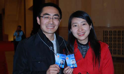 一打聽,還真是一對小兩口。仔細一看,兩人都帶著“十一屆全國人大三次會議記者證”的胸牌。這對小夫妻,男的叫張鑫,來自陜西日報,女的叫趙靜,來自三秦都市報。他們都是各自媒體派到北京報道此次會議的參會記者。