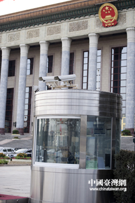 人民大會堂前的治安崗亭裝上了攝像頭!。ㄖ袊_灣網發 肖春陽、劉洋攝影報道)