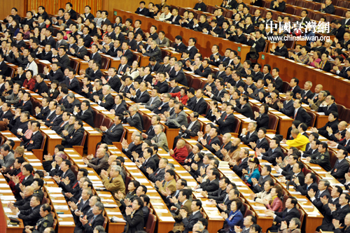 3月13日上午,全國政協十一屆三次在北京人民大會堂閉幕,委員們熱烈鼓掌歡迎政協通過的各項決議。。ㄖ袊_灣網發 肖春陽、劉洋攝)