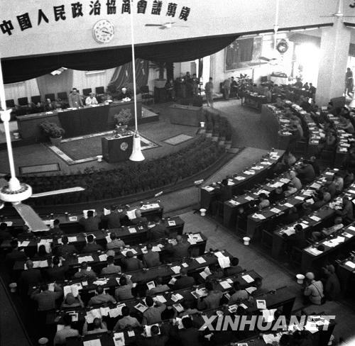 這是中國人民政治協商會議第一屆全體會議會場。1949年9月,中國人民政治協商會議第一屆全體會議通過了《中國人民政治協商會議共同綱領》。新華社發
