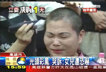 侯彩鳳剔光頭抗議對手抹黑。(臺灣TVBS資料圖)