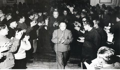 “文革”結(jié)束后,中共共產(chǎn)黨著手撥亂反正的工作。各民主黨派成立臨時領(lǐng)導(dǎo)小組,協(xié)助共產(chǎn)黨平反冤假錯案,進行恢復(fù)組織的工作。1978年3月,中共中央統(tǒng)戰(zhàn)部舉行宴會,招待各民主黨派和工商聯(lián)負責(zé)人,中共中央副主席、政協(xié)全國委員會主席鄧小平,全國政協(xié)副主席烏蘭夫出席了招待會。