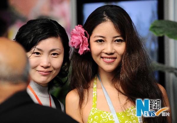 太平洋聯合館內一名講解員(右)與參觀者合影(4月23日攝)。在世博園區試運行的幾天里,一些展館的服務人員在接待觀眾、疏導客流和接受咨詢時,落落大方,面帶微笑,她們熱情、周到的服務,給游客留下很好的印象。新華社記者陳凱攝