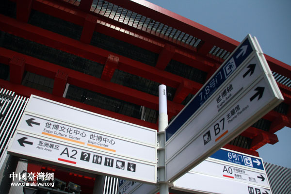 世博園內(nèi)清晰醒目的路牌,為游人指明方向。(中國臺灣網(wǎng) 鐘寶華 攝)