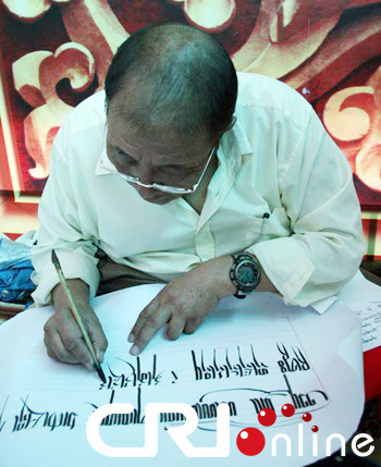 藏文書法有著悠久的歷史,從藏文產(chǎn)生以來至今,先后共出現(xiàn)了烏金、徂仁、徂同、朱匝、白徂和酋體等數(shù)十種字體。藏文是用硬筆書寫的,形體優(yōu)美流暢。有關藏文書法的書經(jīng)、筆論等有上百種之多。羅布次仁攝