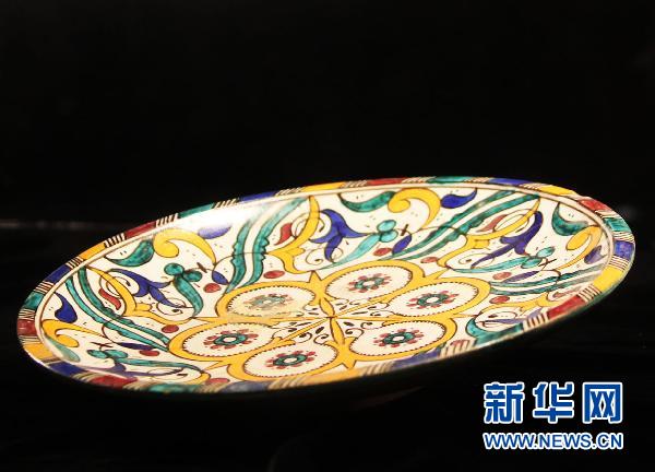 色彩斑斕的摩洛哥彩繪工藝陶盤(8月8日攝)。
