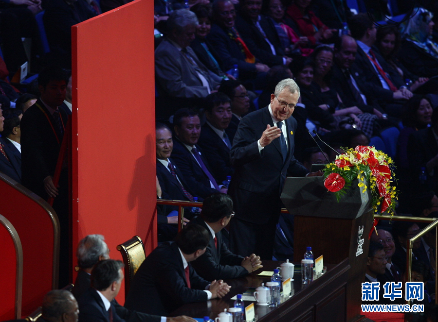 10月31日,中國2010年上海世博會閉幕式在世博文化中心舉行。這是國際展覽局主席藍峰在致辭。 新華社記者劉彬攝