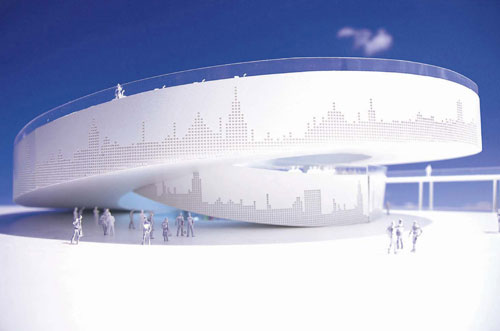 丹麥館名為“夢想城市”,將如同一本生動的童話書,帶領參觀者親身體驗丹麥的城市生活。孩子們可以在廣場上自由自在地玩耍,參觀者可以享用一頓野餐,并讓“海港”的海水輕撫腳趾,而在水中央,還端坐著從丹麥遠道而來的貴客——小美人魚。在這里,參觀者可以選擇步行或自行車兩種不同的速度,由表及里地欣賞丹麥館。蹬上自行車穿梭于這座雙螺旋型的建筑,從地面盤旋到達十二米的高度,又盤旋而下回到地面,掠過城市的生活,細細體味周遭的一切。