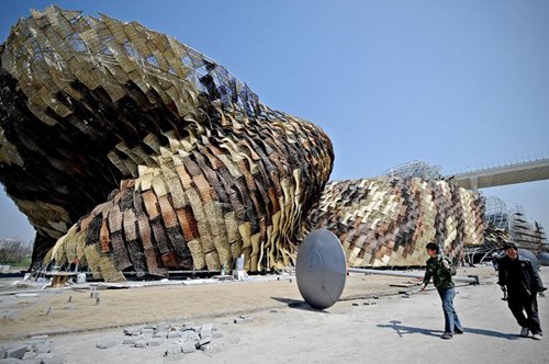 在西班牙館主體落成儀式上,設(shè)計師貝妮代塔塔利亞韋(Bendetta Tagliabue)難以抑制心中的喜悅。她同西班牙展區(qū)總代表瑪麗亞 特納(Maria Tena)站在一起,不時環(huán)顧場館四周指指點(diǎn)點(diǎn),又不時地咧開嘴開心大笑起來。