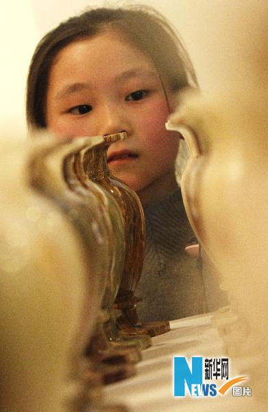 5月1日,沈雨欣在館內參觀巴基斯坦的玉制品。新華社記者裴鑫攝