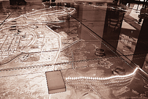 進入伊茲密爾案例館,長9.5米、寬5.7米的透明玻璃地面內(nèi),分布伊茲密爾市完整的衛(wèi)星圖片,利用燈光、小模型生動展示了大海峽工程的軌道和站點分布——4000多公里的海岸線,環(huán)繞一個復雜管網(wǎng)。污水通過管線流向泵站,再排放到污水處理站,最終成為凈水,流向愛琴海。(葉薇)