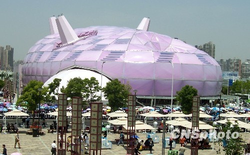 上海世博會日本館愛稱“紫蠶島”,它的建筑理念是“像生命體一樣會呼吸的環保建筑”,展館外部覆蓋一層利用太陽能發電的超輕“膜結構”。 中新社發 周東潮 攝