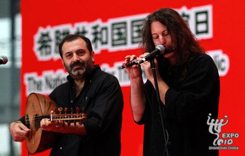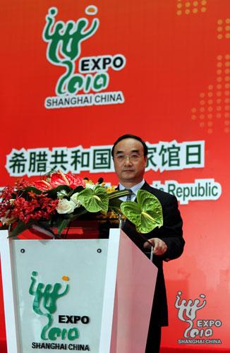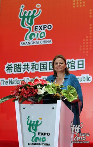 希臘國家館日官方儀式19日上午在世博中心隆重舉行。希臘經濟、競爭力與海運部部長盧卡·卡策莉(Loukia Katseli),中國交通運輸部副部長翁孟勇出席儀式并致辭。上海世博會中國政府副總代表趙亞力出席儀式。