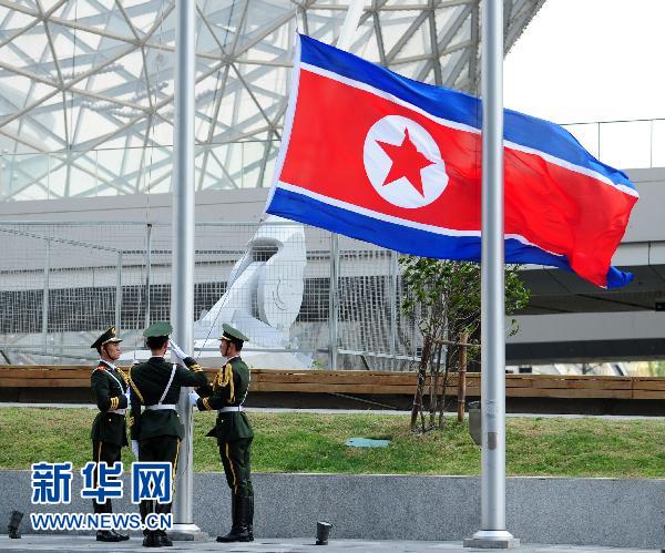 9月6日,上海世博會迎來朝鮮國家館日。這是升旗儀式。 新華社記者 李百順攝