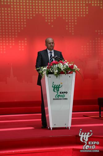 杰拉爾·巴伊拉米首先對中國成功舉辦本屆世博會表示衷心的祝賀。他表示,前南斯拉夫馬其頓共和國與中國之間的傳統友誼深厚,經濟關系密切,商貿來往頻繁,合作領域廣泛,雙方在各方面的合作都實現了互利共贏。希望前南斯拉夫馬其頓共和國豐富的文化與自然資源、傳統風俗和獨特魅力能在上海世博會上得以完美展現,相信其國家館能吸引世界各國的游客前來參觀。