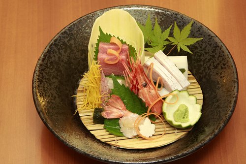“秋之彩”料理共8道菜,原料有日本金槍魚、牡丹蝦、鮮貝及挪威三文魚等。本組圖片 早報(bào)世博記者 趙昀