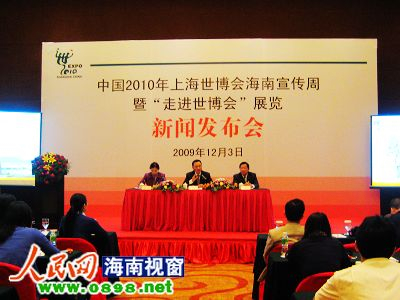 12月3日上午,中國2010年上海世博會海南宣傳周暨“走進世博會”展覽新聞發布會在海口文華大酒店舉行。