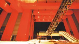 昨晚,上海世博會(huì)中國(guó)國(guó)家館內(nèi)部亮燈后,底樓被映得一片通紅。中國(guó)館是上海世博會(huì)的永久性建筑之一,目前,中國(guó)館已經(jīng)進(jìn)入全面布展階段,將于今年年底建成竣工。