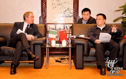 上海世博局副局長胡勁軍會(huì)見上海世博會(huì)意大利政府總代表昆提耶里(Beniamino Quintieri)
