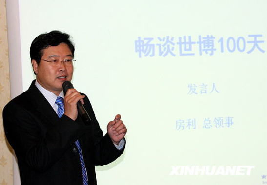 1月21日,在南非首都約翰內斯堡,中國駐約翰內斯堡總領事房利暢談上海世博會倒計時100天。新華社發(梁銓攝)