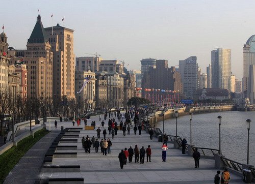 外灘經(jīng)過改造后,地面道路為雙向4根車道,過境車輛則從地下的外灘隧道通過,使到達(dá)交通與過境交通分開,減少地面交通的負(fù)擔(dān)。