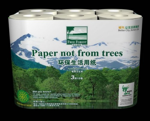 上海東冠華潔紙業有限公司作為世博會上海世博會生活用紙行業項目贊助商,專門為世博開發了“自由森林”環保生活用紙概念,采用了百分百的回收牛奶飲料盒,經過特殊造紙工藝制成再生紙。收集過程需經過回收、挑選、分離等很多流程,拉動了很多的人力、物力和專業的循環回收體系。同時,為了保證產品的安全性和舒適性,對原料、生產過程的管控都非常嚴格,作為為綠色世博開發的環保生活用紙產品,在生產過程中,堅持“不砍一棵樹”的品牌理念,為世博會提供了安全、舒適、環保的生活用紙產品。為促進循環經濟和減少碳排放貢獻自己的力量。